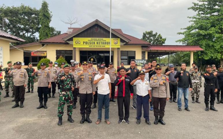 Bengkulu Utara - Polsek Ketahun melaksanakan apel gabungan dalam rangka patroli bersama menciptakan Kamtibmas yang kondusif di halaman Mapolsek Ketahun Minggu (31/12/2023) pukul 17.00 WIB.