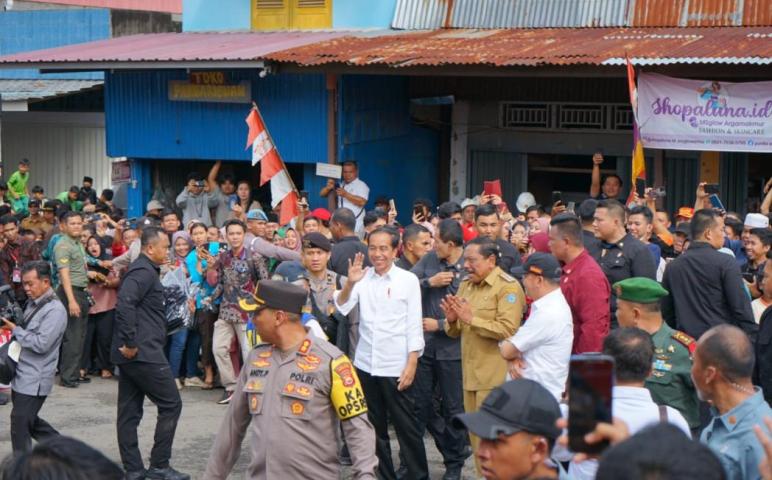 Kunjungan Kepala Negara tersebut dalam rangka meninjau langsung rancangan revitalisasi pasar pasca kebakaran pada April 2021 yang lalu.
