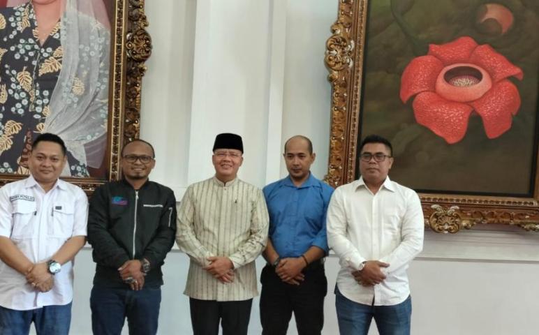 Audensi yang dilaksanakan di Balai Semarak Bengkulu, Senin (10/4/2023) siang, Tim Formatur bersama Bakal Calon Ketua Umum Pemprov Kodrat Bengkulu Indra Putra, diterima Gubernur Bengkulu.