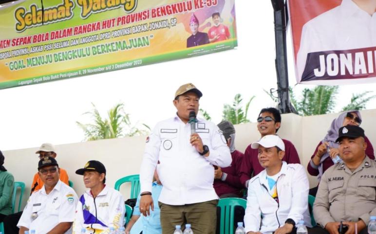 “Dalam rangka HUT ke-55 Provinsi Bengkulu Tahun 2023 ini, Pemerintah Kabupaten Seluma ikut serta meriahkan yaitu dengan mengadakan Turnamen Sepak Bola,” ucapnya.