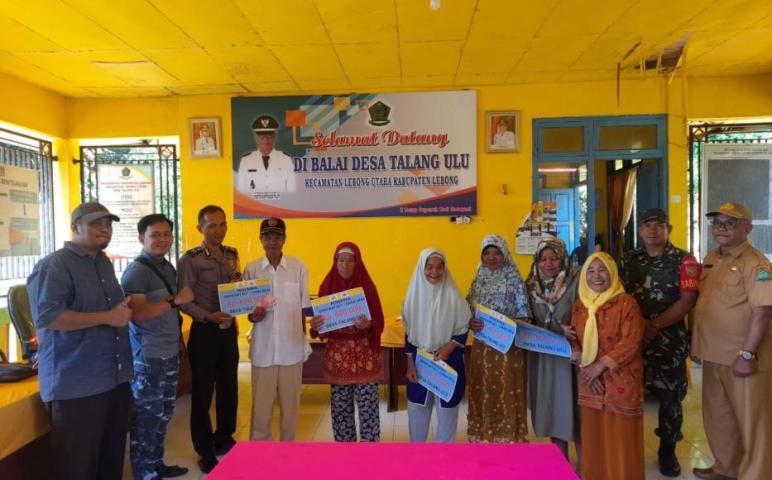 Lebong - Sebagai bentuk sinergi dalam mendampingi program di desa wilayah binaannya, Bhabinkamtibmas Polsek Lebong Utara Polres Lebong Polda Bengkulu, Brigpol Cindra Sugara, menghadiri pembagian BLT DD Kemiskinan Ekstrim di Desa Talang Ulu Kecamatan Lebong Utara, Kabupaten Lebong, Selasa (28/11/2023).