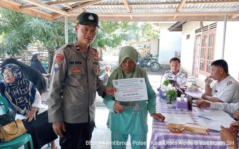 Bhabinkamtibmas Polsek Kaur Utara Hadiri Penyaluran BLT DD di Desa Ulak Agung