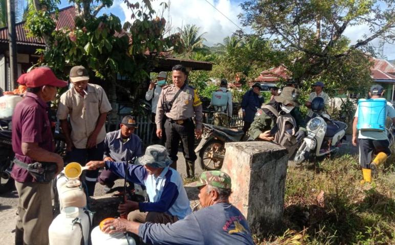 Lebong - Bhabinkamtibmas Polsek Lebong Selatan Polres Lebong Polda Bengkulu, Bripka Mardianto, menghadiri kegiatan gotong royong pemberantasan Hama Pacet di pemukiman persawahan dan perkebunan warga, di Kelurahan Taba Anyar Kecamatan Lebong Selatan, Kabupaten Lebong, Rabu (31/5/2023) pagi.