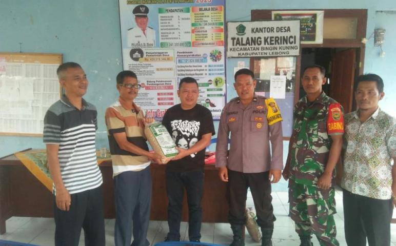 Bhabinkamtibmas Polsek Lebong Selatan Distribusikan Bibit Padi kepada Petani Secara Simbolis