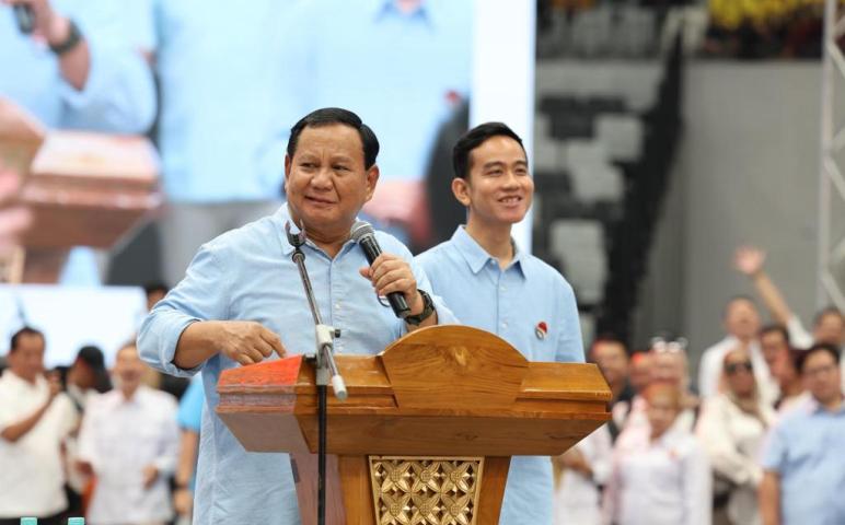 “Mengapa memilih Prabowo-Gibran? Kita bukan saja memilih presiden di 2024 ini, tetapi juga kita memilih mentor atau king maker. Di mana semua mengetahui paslon satu ada Surya Paloh, yang berafiliasi dengan Jusuf Kalla. Paslon tiga, Megawati dan paslon dua, king makernya Pak Jokowi,” ucapnya.