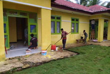 Bersama Masyarakat Anggota Satgas TMMD BU Mengecat Puskesmas Pembantu