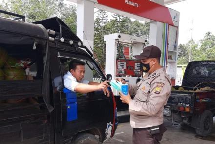 Bhabinkamtibmas Polsek Padang Ulak Tanding Bagikan Masker