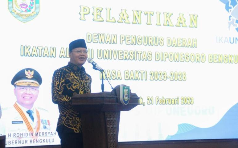 Wartaprima.com - Hadir pada Pengukuhan Pengurus Dewan Pimpinan Daerah Ikatan Keluarga Alumni Universitas Diponegoro (DPD IKA UNDIP) Bengkulu Masa Bhakti 2023-2028, di Balai Raya Semarak Bengkulu, Selasa (21/2/2023) malam, Gubernur Bengkulu Rohidin Mersyah menyampaikan, bahwa peranan akademisi khususnya alumni Perguruan Tinggi, sangat penting dalam membangun dinamika perekonomian, baik secara nasional maupun daerah.