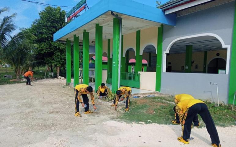 Jelang HUT Bhayangkara, Polsek Enggano Gelar Aksi Bersih-Bersih Masjid