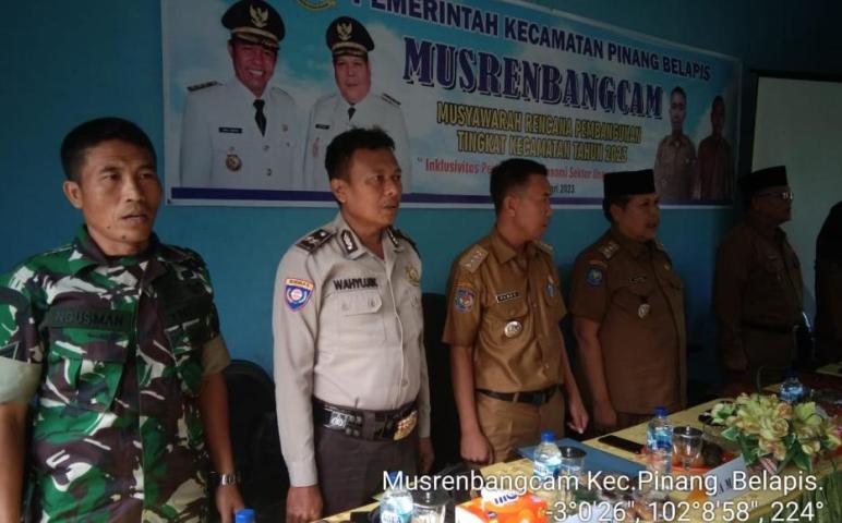 Lebong - Senin (20/2/2023) pagi, Kanit Binmas Polsek Lebong Utara Polres Lebong Polda Bengkulu Aiptu Wahyu RK, mengikuti Musyawarah Rencana Pembangunan Kecamatan (Musrenbangcam) tahun 2023 Kecamatan Pinang Berlapis Kabupaten Lebong.