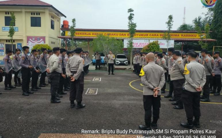 Kapolres Kaur AKBP Eko Budiman, S.I.K, M.I.K,  M.Si., melalui Kasi Humas Kegiatan ini guna melaksanakan pengecekan personel Polres Kaur yang terlibat sprin Pleton dalmas awal, Dalmas Lanjut, Raimas dan Unit Pendukung.