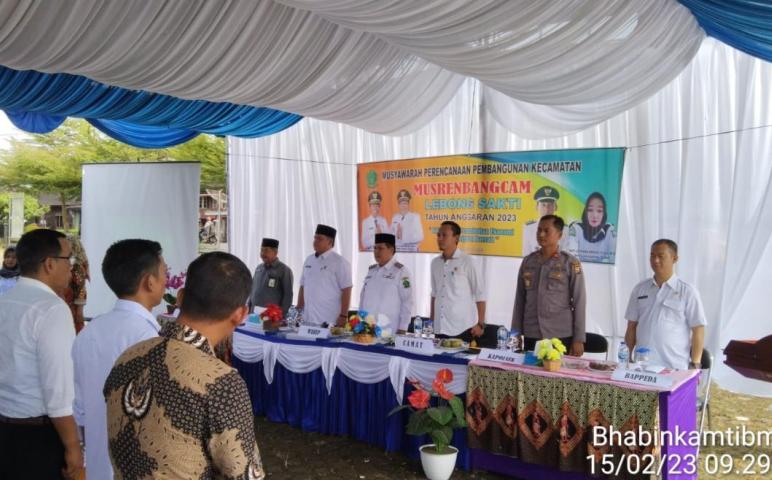 Lebong, Wartaprima.com - Kapolsek Lebong Tengah Polres Lebong Polda Bengkulu Iptu Tulus Wibowo pada Rabu (15/2/2023) pagi, menghadiri kegiatan Musrenbangcam Lebong Sakti 2023 di kantor Camat Lebong Sakti.