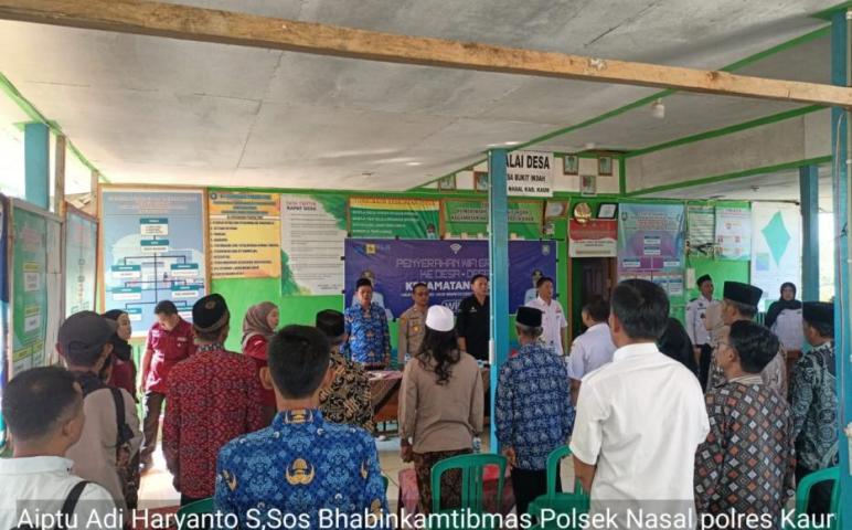 Kaur - Kapolsek Nasal Iptu Susanto, S.I.Kom menghadiri kegiatan Penyerahan Wifi oleh Sekretaris Daerah (Sekda) Kaur Dr. Drs. Ersan Syahfiri, MM di Desa terpencil Kecamatan Nasal Kabupaten Kaur, Rabu (17/07/2024), Pukul 09.00 Wib.
