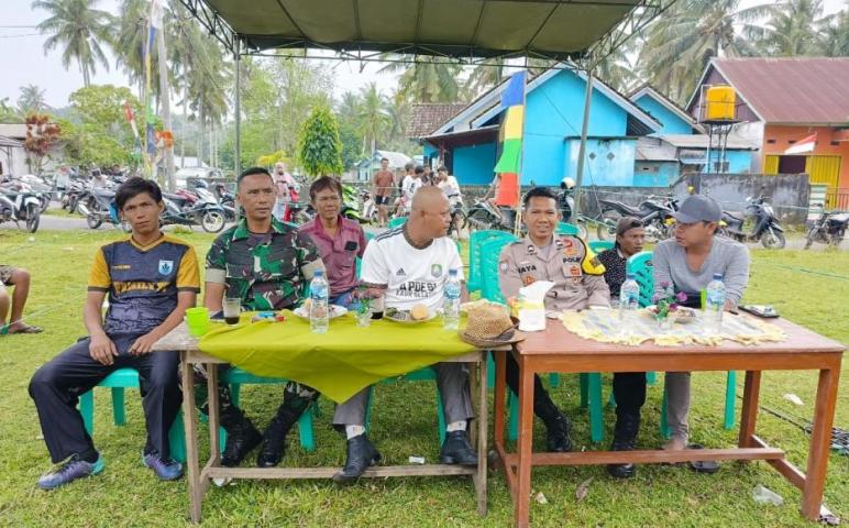 Kontrol Situasi Kamtibmas, Bhabinkamtibmas Polsek Kaur Selatan Hadiri Kegiatan Perayaan HUT RI di Desa Jembatan Dua
