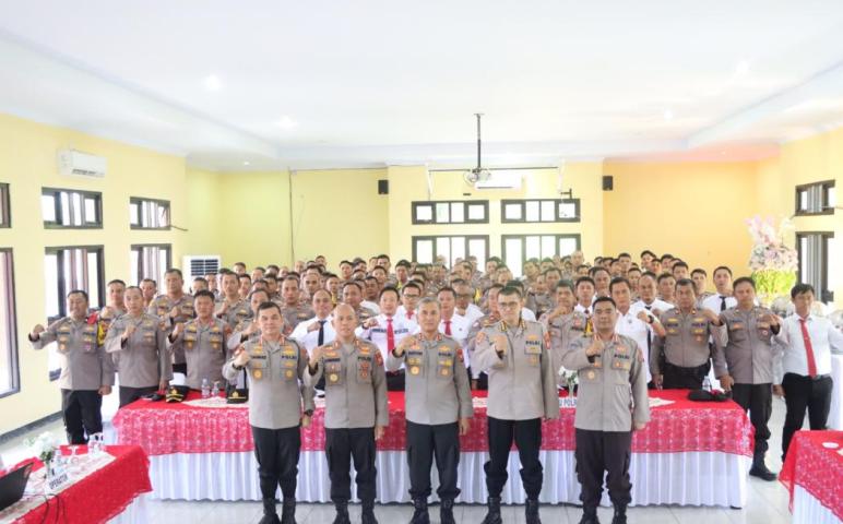 Kegiatan di lanjutkan di Aula Endra Dharmalaksana dan Kapolres Seluma melaksanakan Laporan Kesatuan lalu Kapolda Bengkulu memberikan Arahan internal Kapolda Bengkulu kepada personel Polres Seluma.
