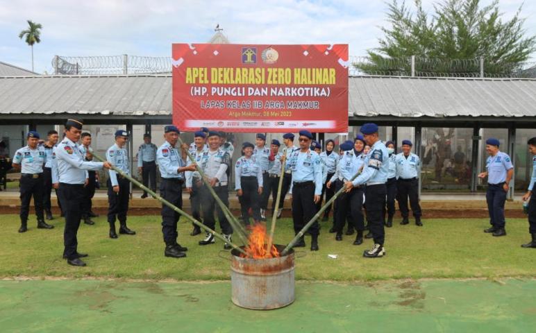 Lapas Arga Makmur menggelar deklarasi Zero Halinar dimana senelumnya menggelar Razia kamar. Setelah apel selesai Kalapas dan pegawai Lapas memusnahkan barang bukti hasil penggeledahan 1 tahun terakhir seperti Headset, kabel ,ikat pinggang, paku, sikat gigi yang ditajamkan di musnahkan dengan cara di bakar langsung di lapangan Apel.