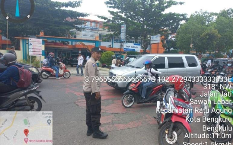 Personel Polsek Ratu Samban “Strong Point Sore” Didepan SMK N 1 Kota Bengkulu