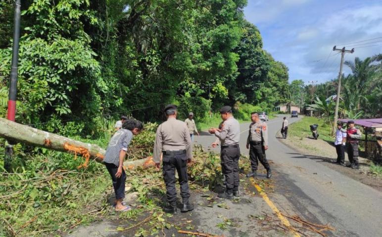 Polres Seluma Evakuasi Pohon Tumbang di Jalan Raya Desa Air Latak