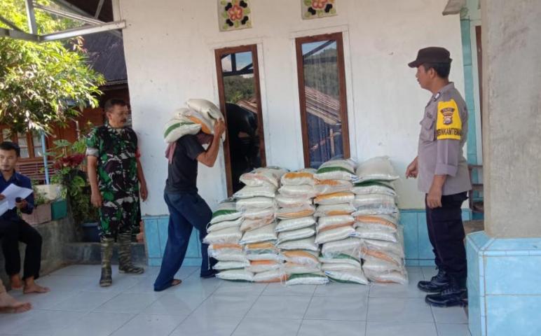 Polsek Lebong Selatan Kawal Pendistribusian Cadangan Beras ke KPM di 2 Kecamatan
