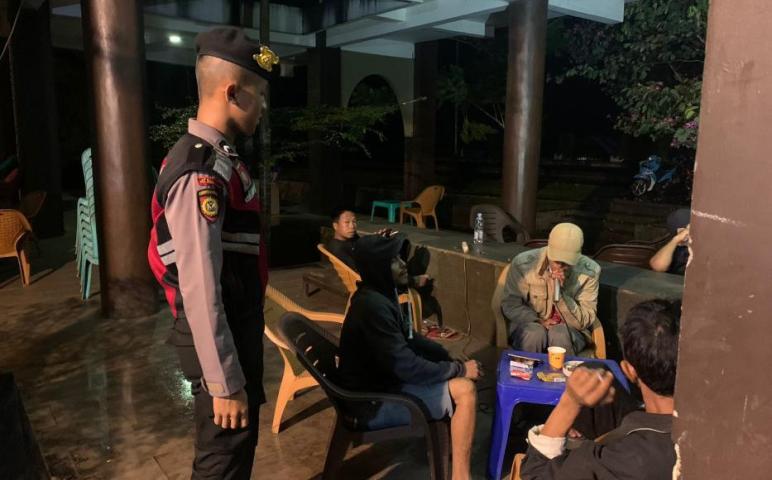 Lebong - Tim Patroli Sat Samapta Polres Lebong Polda Bengkulu, melaksanakan patroli dialogis disebuah warung gorengan dan mengimbau agar selalu waspada terhadap rawan kejahatan pada malam hari, Jumat (10/3/2023) malam.