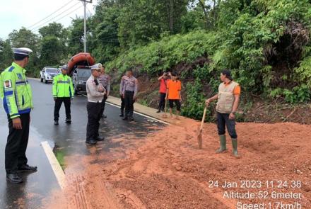 Polres Benteng Bersama Damkar dan BPBD Bersihkan Badan Jalan Terkena…