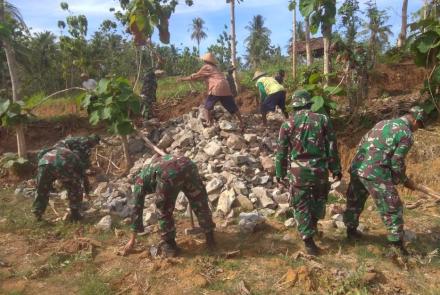 TNI Dan Warga Mengeroyok Tumpukan Batu Penopang Jalan Makadam