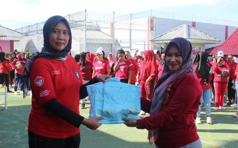 Kota Bengkulu - Lapas Perempuan Kelas IIB Bengkulu Kantor Wilayah Kementerian Hukum dan Hak Asasi Manusia Bengkulu melaksanakan kegiatan Pembagian Baju & Training Olahraga dan Pemberian Peralatan Mandi kepada Seluruh Warga Binaan Pemasyarakatan (WBP)
