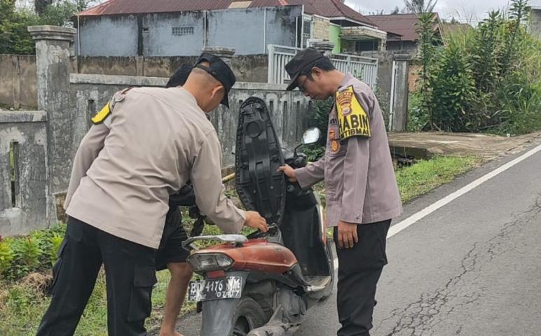 Patroli Sambang, Bhabinkamtibmas Datangi Lokasi Rumah Warga yang Menjadi Korban Pelemparan Batu oleh Orang Tidak Dikenal