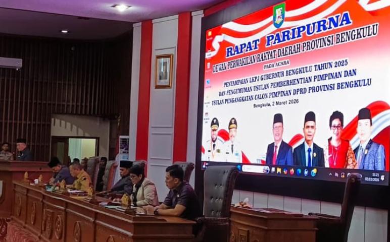 ‎Dalam Rapat Paripurna ke-3 Masa Persidangan I Tahun 2026 yang digelar Senin (2/3/2026) di Ruang Rapat Paripurna DPRD Provinsi Bengkulu, terdapat dua agenda utama: