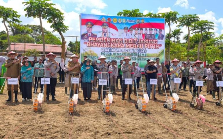Pemerintah Provinsi Bengkulu bersama Kepolisian Daerah (Polda) Bengkulu meluncurkan program pembenihan jagung Bhayangkara Merah Putih di lahan Balai Informasi Penyuluhan Pertanian (BIPP), Desa Kelobak Kabupaten Kepahiang, (06/05/ 2025).