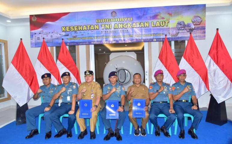 Papua - Mewakili Pangkoarmada III Laksamana Muda TNI Hersan,S.H.,M.Si.,Asops Pangkoarmada III Kolonel Laut (P) Bagus Badari Amarullah, S.E., M.M. Dan Aspers Pangkoarmada III Kolonel Laut (P) Rahadian Rahmadi, S.E. menghadiri Penganugerahan Brevet Kehormatan kesehatan Penyelaman dan Hiperbarik dan penyerahan bantuan Ambulans dari BNI berbagi di Ruang Chamber hiperbarik RSAL dr. Oetojoe Jl. Ahmad Yani, Klademak, Kecamatan Sorong Manoi, Kota Sorong, Papua Barat Daya Senin, (7/10/2024).