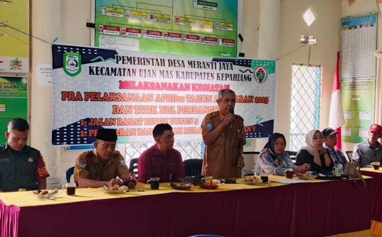 Disampaikan oleh Kades Terpilih Desa Meranti Jaya Amrullah didampingi Ketua BPD dalam kegiatan Musyawarah Pra-pelaksanaan kegiatan, pada tahun anggaran 2025 ini, pihak pemerintahan Desa akan melaksanakan kegiatan fisik berupa pembangunan Rabat Beton yang merupakan hasil usulan yang sudah disepakati sebelumnya antara pemerintahan Desa bersama masyarakat. Adapun anggaran yang sudah direncanakan untuk pembangunan fisik tersebut sebesar Rp. 165.000.000,- yang bersumber dari DD ( Dana Desa) dengan perincian fisik yaitu ;