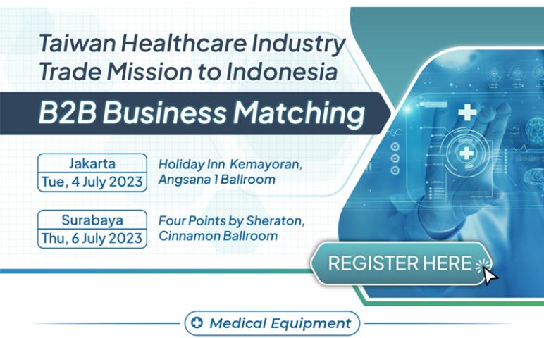 Dalam acara yang disponsori oleh Bureau of Foreign Trade, MOEA., dan diselenggarakan oleh TAITRA, sejumlah perusahaan dan instansi kesehatan asal Taiwan akan mengundang para pengusaha dan instansi terkait dari Indonesia, khususnya Jakarta dan Surabaya untuk melakukan pertemuan dan menjajaki potensi kerjasama.