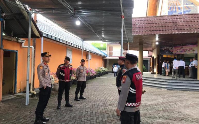 Sebelum pelaksanaan ibadah, personel terlebih dahulu melakukan sterilisasi dan pengecekan di sekitar area gereja guna memastikan situasi aman serta memberikan rasa nyaman kepada jemaat dalam menjalankan ibadah.