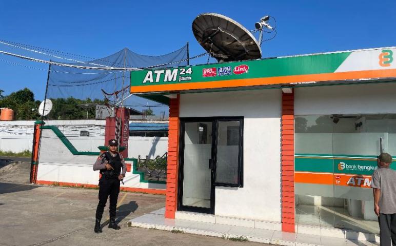 Bengkulu Utara - Anggota Polsek Ketahun melaksanakan pengamanan obyek vital pada yang ditugaskan untuk melaksanakan pengamanan di Bank dan ATM Bank Bengkulu Rabu (03/07/2024).