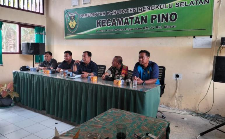 Kegiatan ini dihadiri oleh berbagai pihak terkait, di antaranya Camat Pino, Kanit Binmas Polsek Pino, Babinkamtibmas, Babinsa, Ketua Panwascam, Ketua PPK, para Kepala Desa se-Kecamatan Pino, serta Ketua BPD dari masing-masing desa.