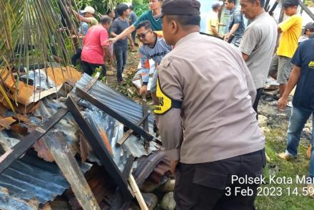 Bhabinkamtibmas Polsek Kota Manna Bantu Bersihkan Puing-Puing Rumah Warga…