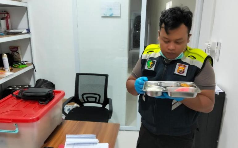 Tim FS MBG melakukan pemeriksaan organoleptik meliputi bentuk, rasa, bau, dan warna makanan. Hasilnya menunjukkan kondisi normal, tidak ditemukan tanda-tanda pembusukan, perubahan warna, atau bau yang mencurigakan. Selanjutnya dilakukan pemeriksaan senyawa kimia terhadap kandungan arsen, sianida, formalin, dan nitrit, yang hasilnya negatif atau tidak ditemukan.